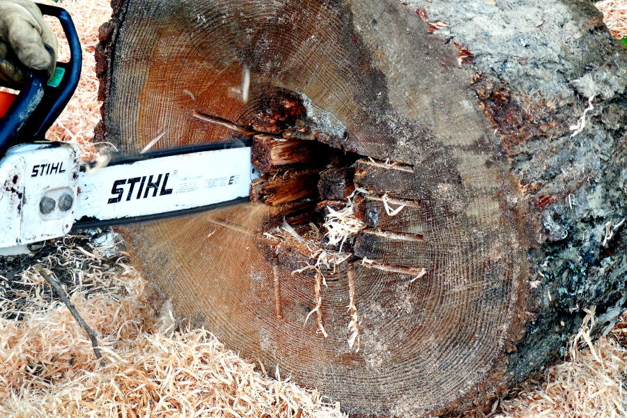 Tony had cut rounds off of some trees that he had previously felled and that's what he used to make the planters with. |